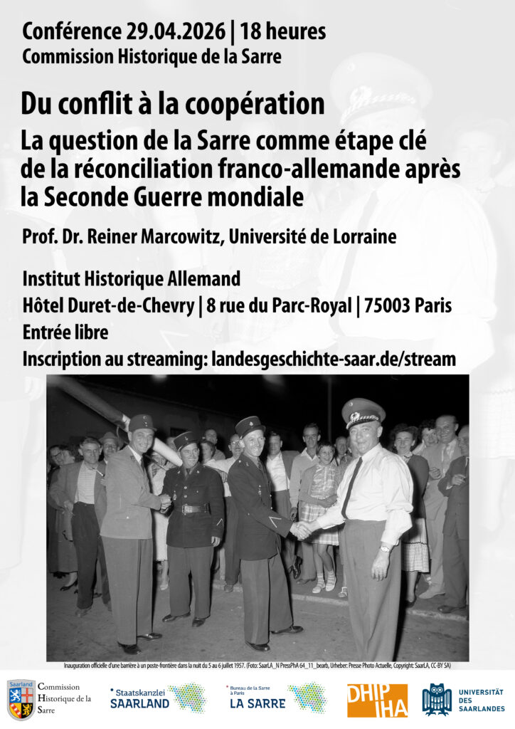 en cooperation avec la Chancellerie d’État de la Sarre, le bureau de la Sarre à Paris et l‘Institute Historique Allemand